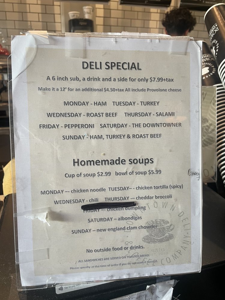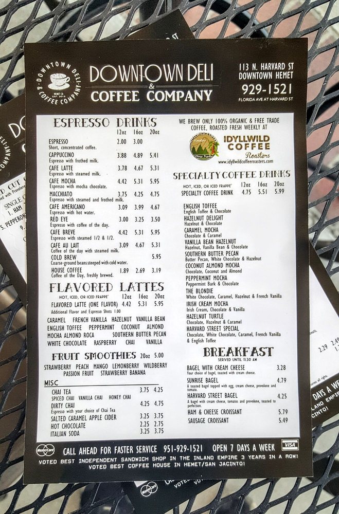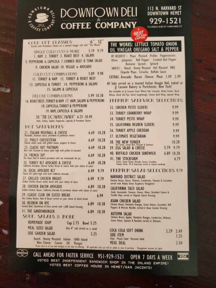 Downtown Deli & Coffee in Hemet, CA offers a delightful blend of deli-style sandwiches, gourmet coffee, and cozy ambiance. With a range of options for dine-in, takeout, and delivery, this spot caters to various preferences. Customers rave about the freshness of the ingredients and the flavorful combinations, such as the downtowner sandwich and the sunrise bagel. The restaurant prides itself on its impeccable service, clean surroundings, and welcoming atmosphere. Whether you're in the mood for a classic BLT, a turkey sandwich, or a meatball sub, Downtown Deli & Coffee delivers on taste and portion size. The diverse menu, gender-neutral restrooms, and free Wi-Fi make it a convenient and inclusive choice for all diners. Stop in for a delicious meal and experience the hidden gem of Hemet for yourself.